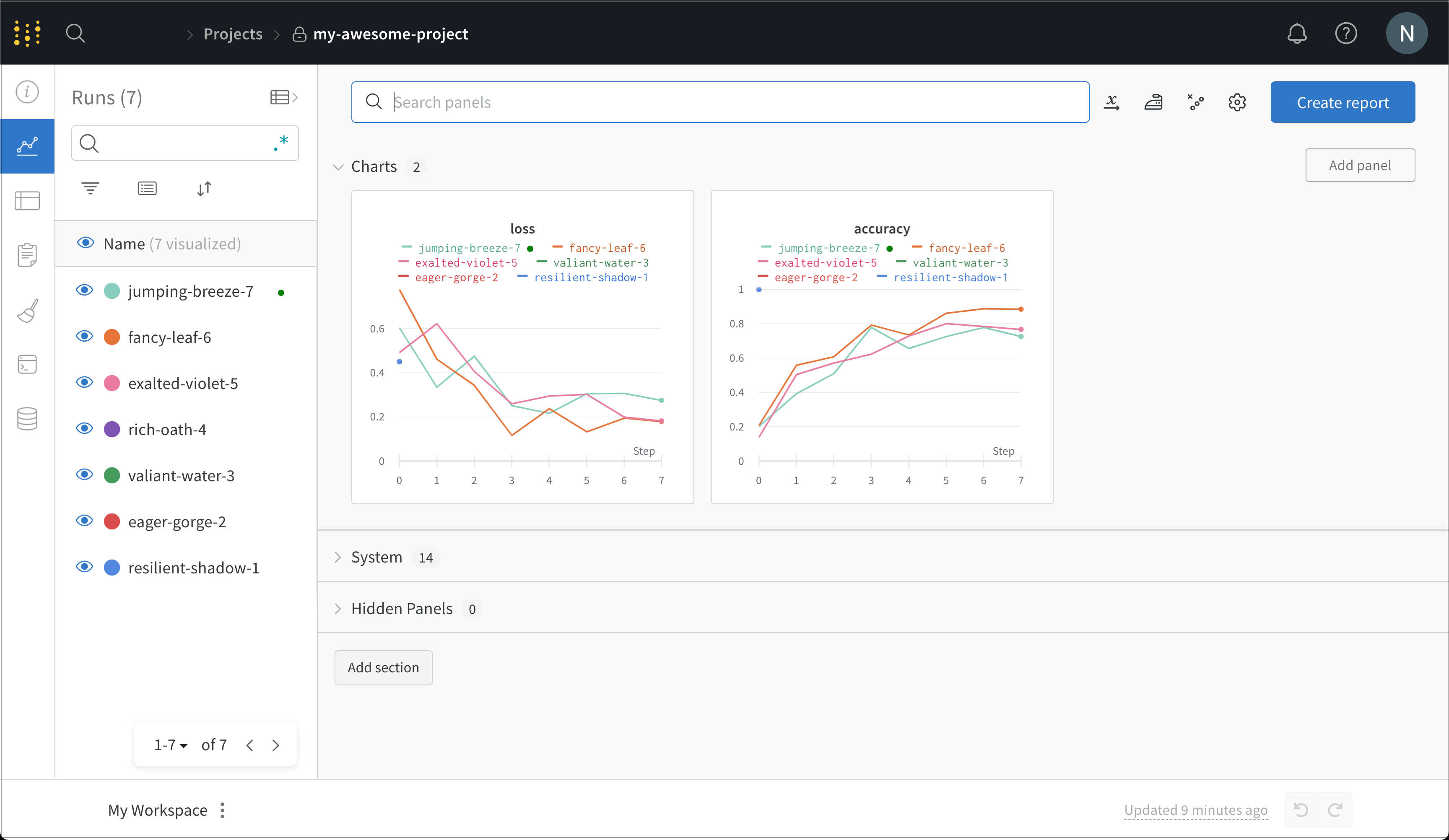 Create and share a report to summarize your work. To create a report programmatically, use the W&B Report and Workspace API.